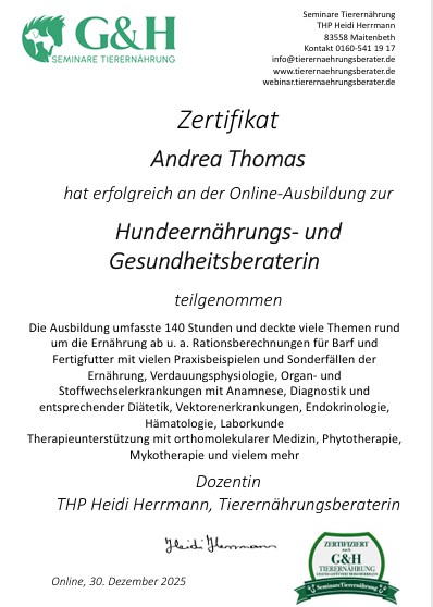 Heidi Herrmann: Ernährungsberaterin für Hunde - Oktober 2024 - März 2025