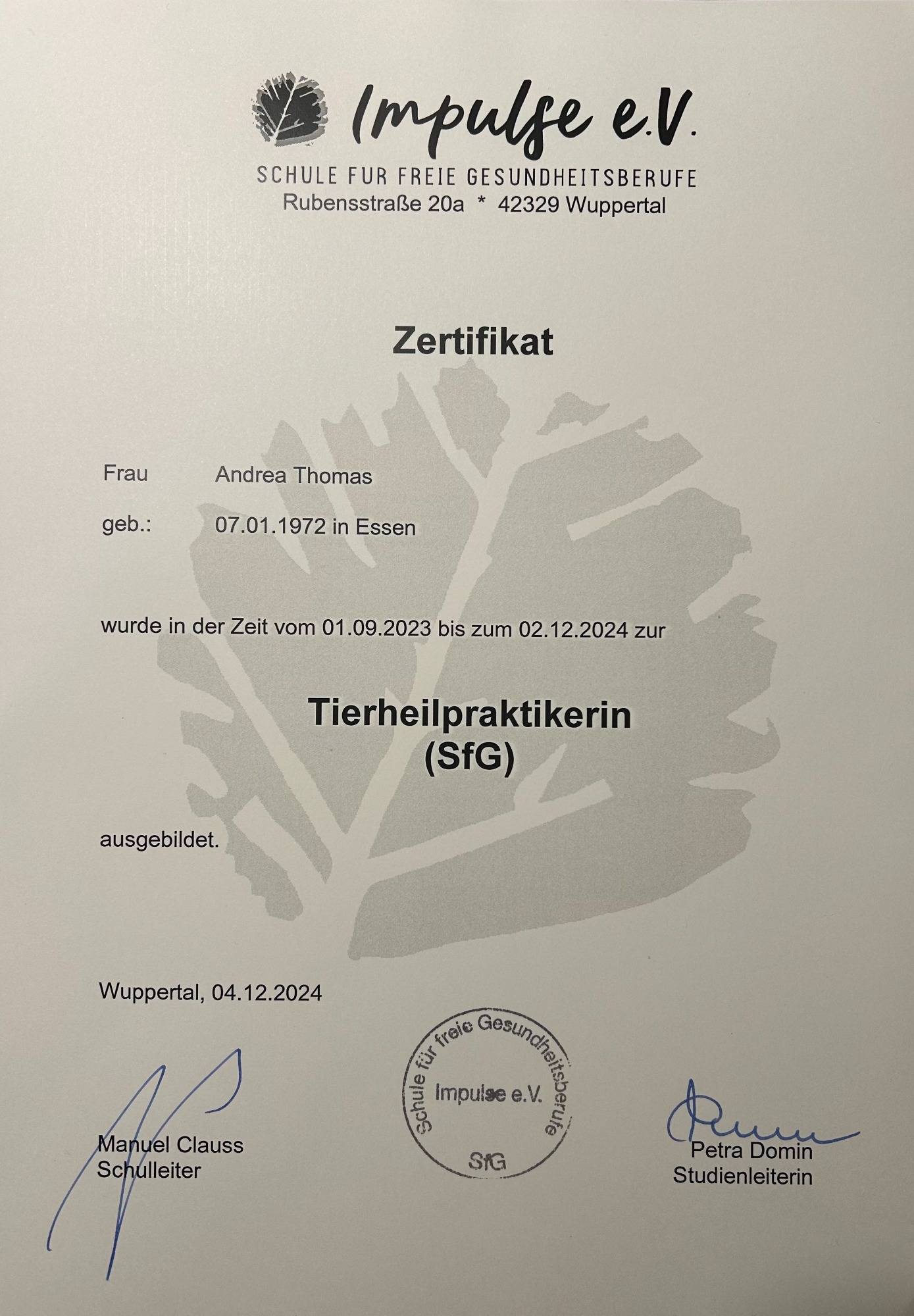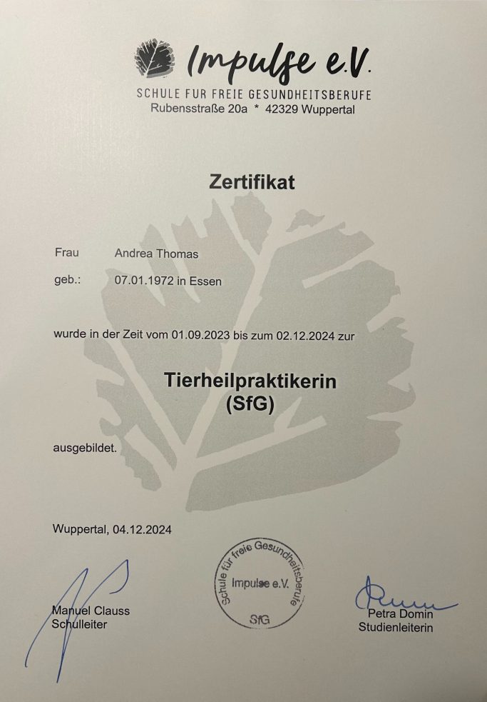 Impulse: Ausbildung zur Tierheilpraktikerin - September 2023 - Dezember 2024